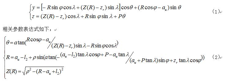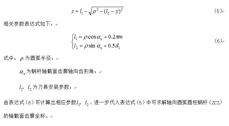由表達式(2)可(kě)計算(suàn)出相應參(cān)數    ,進一步代入表達(dá)式(1)中(zhōng)可求解圓環麵包絡圓柱蝸杆(ZC1)的軸截麵齒廓坐標。