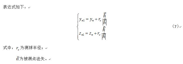 基於齒輪測量中心,求解圓弧圓柱蝸杆軸截麵(miàn)齒廓坐標   ,控製儀器Y軸和Z軸聯動實現蝸杆軸截麵(miàn)齒廓掃描測(cè)量(liàng),測頭的(de)微變化量反映齒麵加工誤差,如圖4所示。鑒於圓(yuán)環麵(miàn)包絡圓(yuán)柱蝸杆(ZC1)、圓環麵圓柱蝸杆(ZC2)軸截麵齒廓方程(chéng)均為超越(yuè)方程,其處理方式為根據變參數   離散得到一組足夠多的等間隔軸(zhóu)截(jié)麵齒廓坐標點   ,軸向(xiàng)圓弧圓柱蝸杆(ZC3)可通過(guò)軸截麵齒廓方程直接獲取一組等(děng)間隔軸截麵齒廓坐標點   。如果使用球形測頭對這三種蝸杆的軸截麵(miàn)齒廓(kuò)進行測量,通過齒輪測量中(zhōng)心讀出的數(shù)據為(wéi)測(cè)球中(zhōng)心的位置坐標,而不是測球球(qiú)形表麵和工件實際接觸點的位置坐標,這(zhè)樣獲取的坐標值與理論接觸點坐標計算比較,得到的結果會有(yǒu)一定(dìng)的(de)誤差。為了便於測量和(hé)得到正確的測量結果,應對被測點進行測球(qiú)半徑補(bǔ)償。因此需(xū)要將(jiāng)求解的蝸杆軸截麵齒廓坐標(biāo)點   轉換到與之(zhī)對(duì)應的測球軌跡坐標點,這樣才能保證測球與工件接觸點與理論齒廓坐(zuò)標點一致,避開了(le)測球半徑導致接觸點變化給測量結果(guǒ)帶來的影響。即(jí)根據求(qiú)解蝸杆軸截麵齒廓坐標點   ,找到測球中心與對應接(jiē)觸點的坐標之間(jiān)的轉換關係,便(biàn)可(kě)獲得測球測量(liàng)軌(guǐ)跡的坐標。