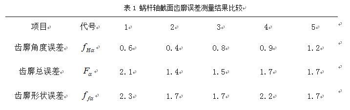 穩定性實驗是對同一ZC1型(xíng)蝸杆的同一齒廓(以第一齒右齒麵為例)進(jìn)行多次(5次(cì))測量,將結(jié)果進行比對。結果如表(biǎo)1。
