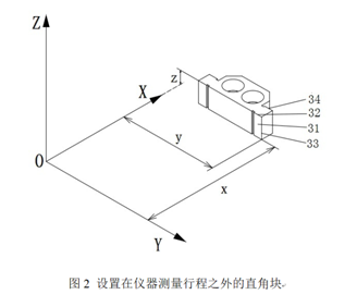 軸(zhóu)正向行程(chéng)多出(chū)的部分,用(yòng)於實(shí)現間接標定。圖2設置在儀器測量行程(chéng)之外的(de)直角塊。