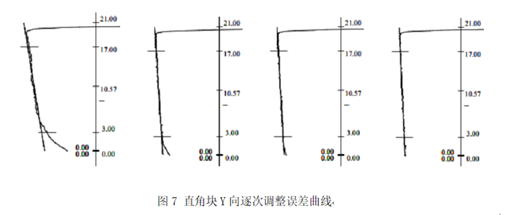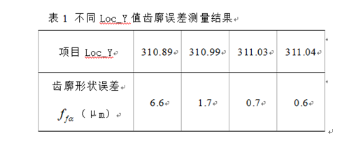 循環(huán)以上過程,根據調整完成的直角塊位置坐標重(chóng)新標定後,再次進行測量(liàng),調整,很快就會得到滿足精(jīng)度要求的直角塊在儀器Y向的坐標位置。圖6是儀器向調整流程圖。參照樣(yàng)板L12087提供的標(biāo)準(zhǔn)齒形誤差曲線報告(gào)單,經過四(sì)次調(diào)整,當Loc_Y=311.04時,滿足齒形(xíng)測(cè)量誤差要求。如表1所示。